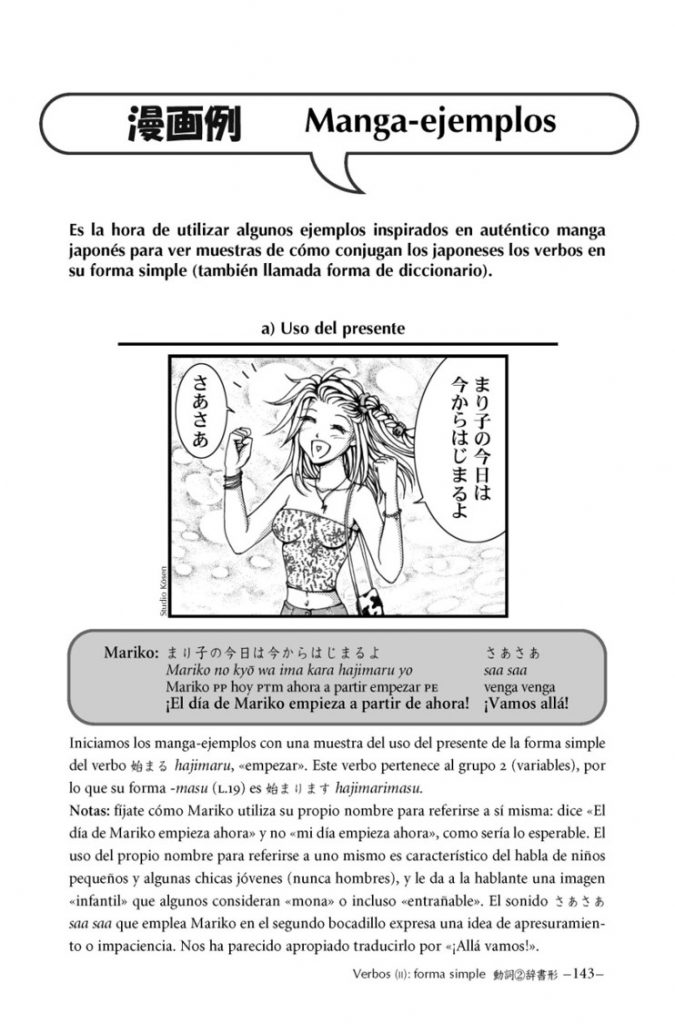 Las viñetas e historias manga que acompañan a las partes teóricas actúan como ejemplos de uso real del japonés y sirven también para ampliar y ver en profundidad ciertos temas.